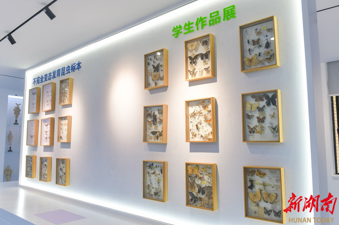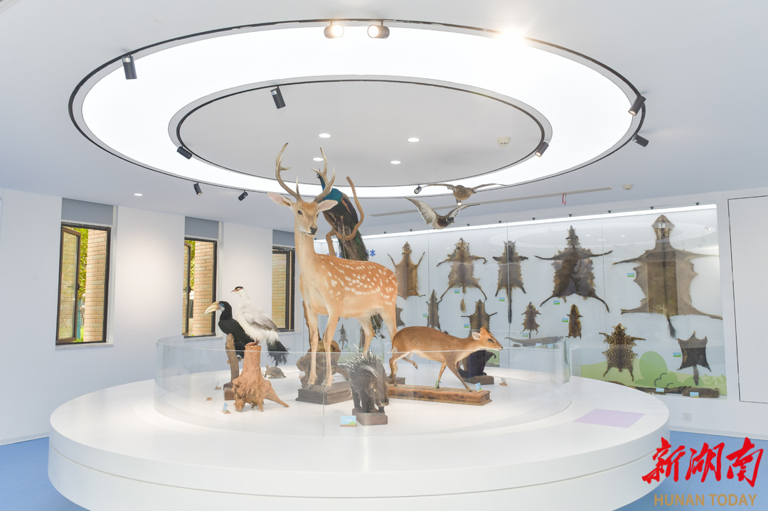 记者了解到,中南大学生物标本馆于2024年9月正式向公众开放。目前馆藏动植物标本超过2000件,其中常年展出逾500件,涵盖从无脊椎动物到脊椎动物的多个生物类群,标本类型丰富多样,包括浸制标本、昆虫标本、皮张标本、骨骼标本等。