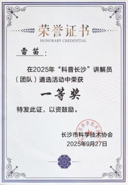 近日,2025年“我是美丽中国讲解员”全国总决赛在北京圆满落幕。经过多轮激烈角逐,我校重金属污染防治创新团队的雷笛凭借扎实的专业素养与出色的讲解能力,脱颖而出,荣获全国总决赛一等奖,创下湖南省选手在此项赛事中的历史最佳成绩!